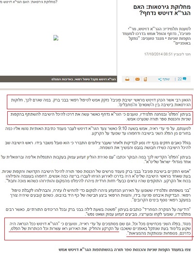 למי שחשב שבח"ח בסה"כ מעונין להיות הגון ולהציג את שני הגירסאות, שימו לב למילים הזולות והבוטות שמצוטטות בעילום שם בסיום הכתבה, ותבינו שיד אינטרסנטית שיש לה השפעה באתר בח"ח היא זו ששינתה את הכותרת ואת הכתבה ומי שמנסה להבין את פשר השינוי, רק נציין, שעורך האתר 'בחדרי חרדים' הוא: "קובי גרינצייג" תלמיד פוניב'ז שוינאים, שכותב כסדר כתבות ומאמרי שיטנה נגד ציבור בני התורה.