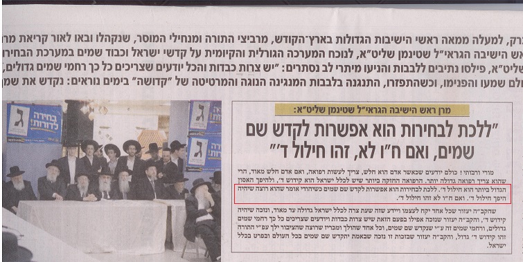אמר הרב שטיינמן בדיוק כך:תרגום מאידיש: "בבחירות יש אפשרות לקדש שם שמים,