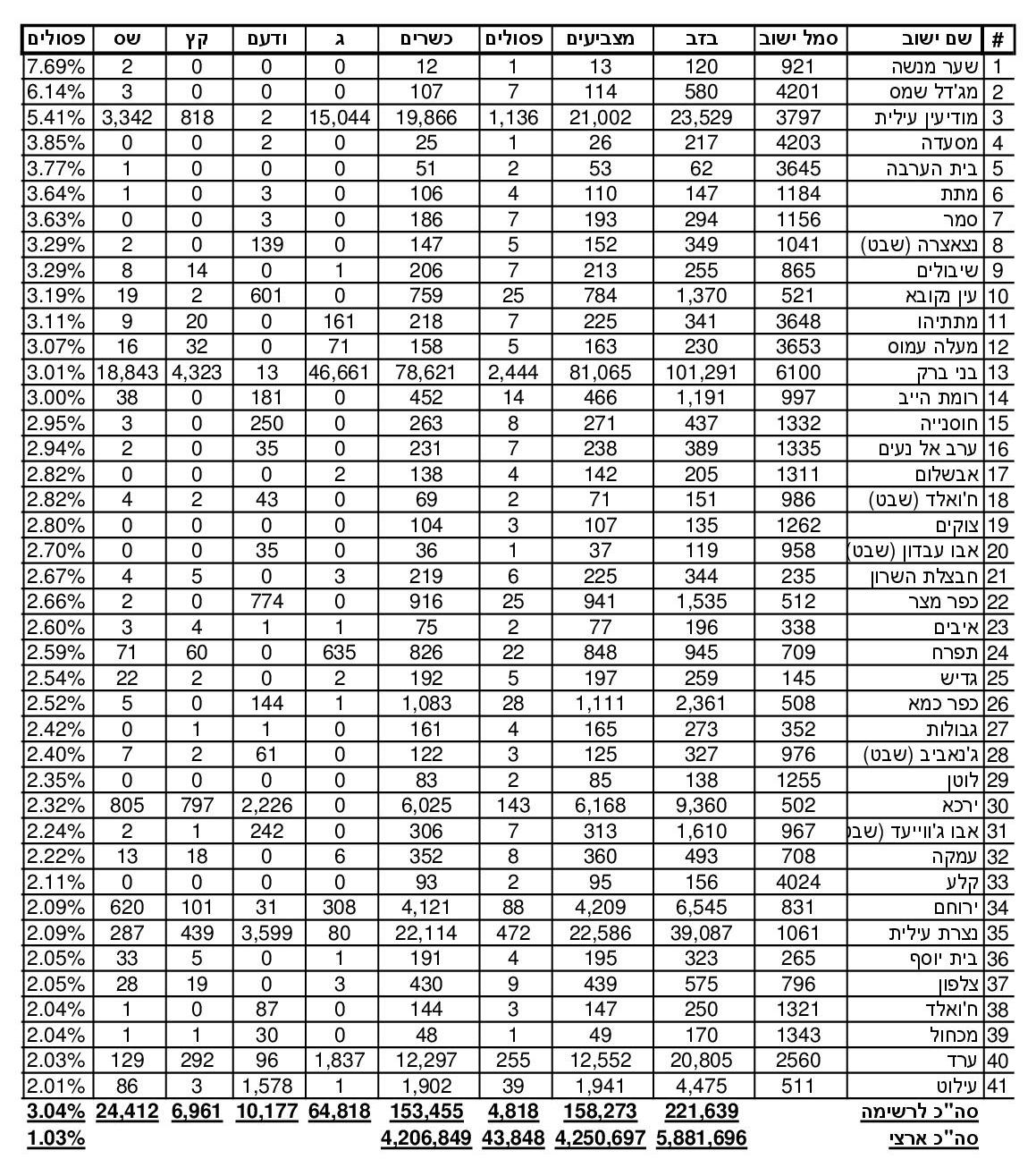 מודיעין עילית - 2013 0.61% פסולים, 2015 5.41% פסולים = פי 9