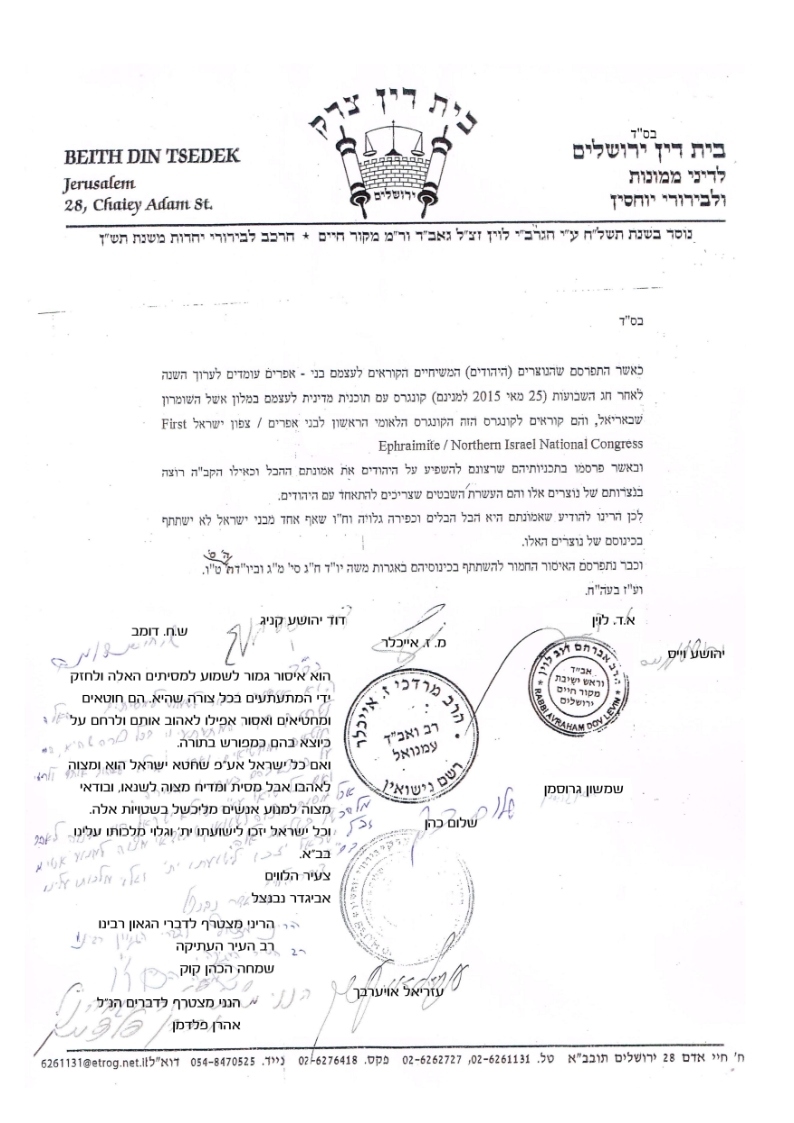 חשיפה ראשונית: מכתב גדולי הרבנים ובד''צ י-ם נגד כינוס נוצרים משיחיים 'בני אפרים'