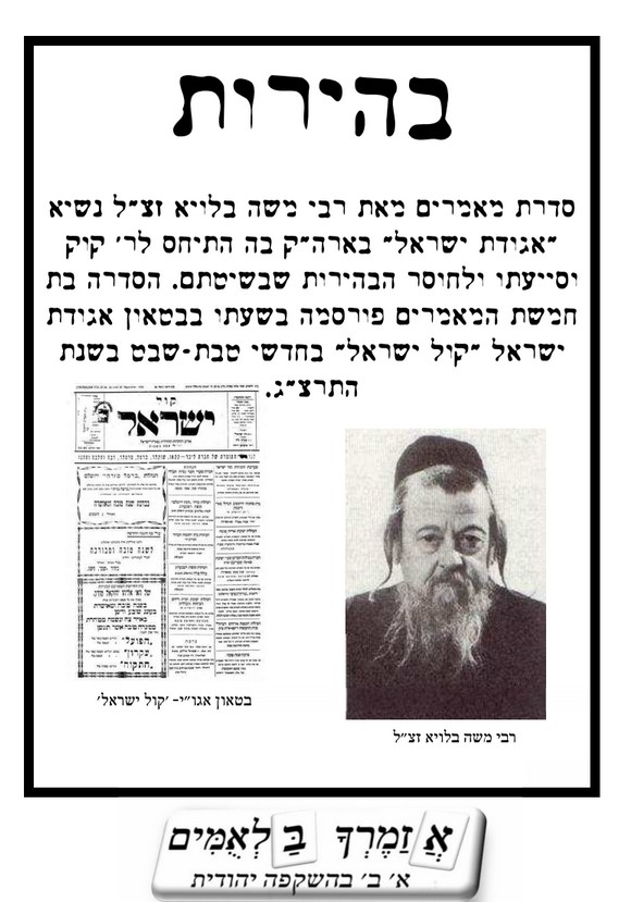 ההסטוריה חוזרת במדויק: 5 מאמרים מהרב משה בלוי שכאילו נכתבו היום , חובה לקרוא!