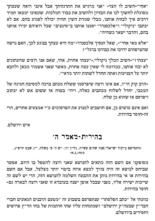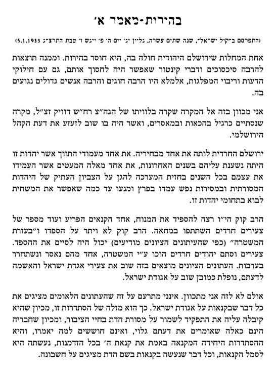 ונותנים חרך לתקופת הימים דאז, אך נראה כי עדיין רב הנסתר על הגלוי, ואגודת ישראל דאז התמודדה עם מצב הרבה יותר קשה מ"בני תורה" דהיום.
