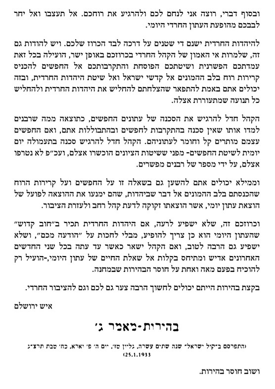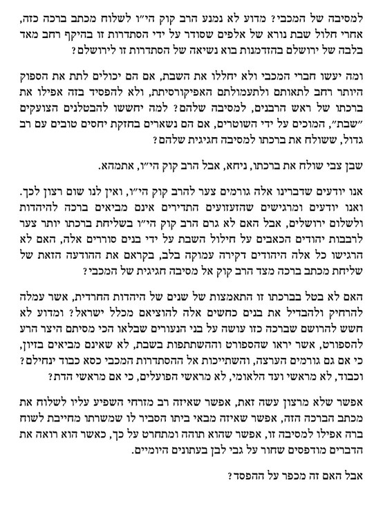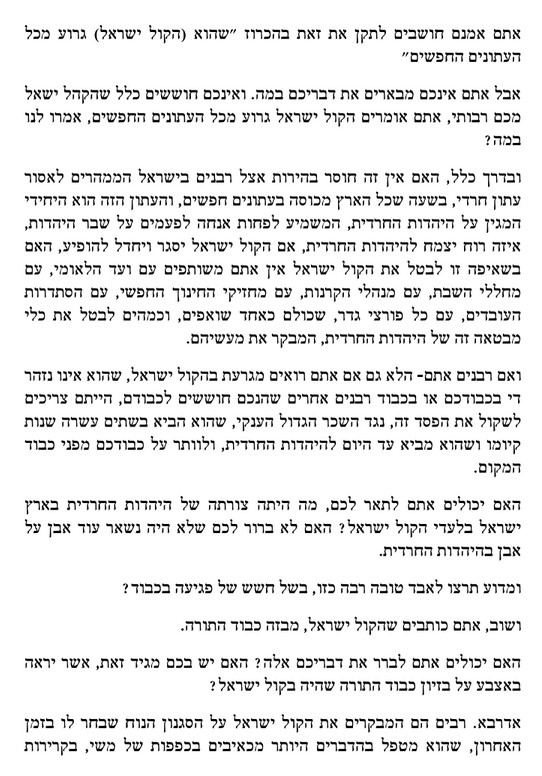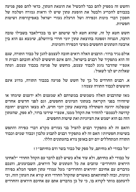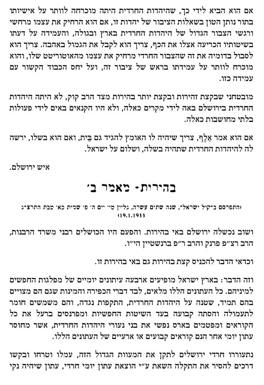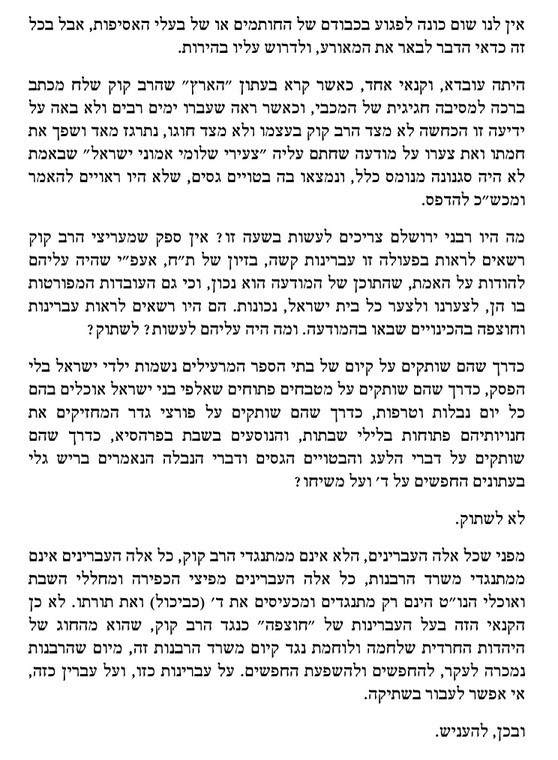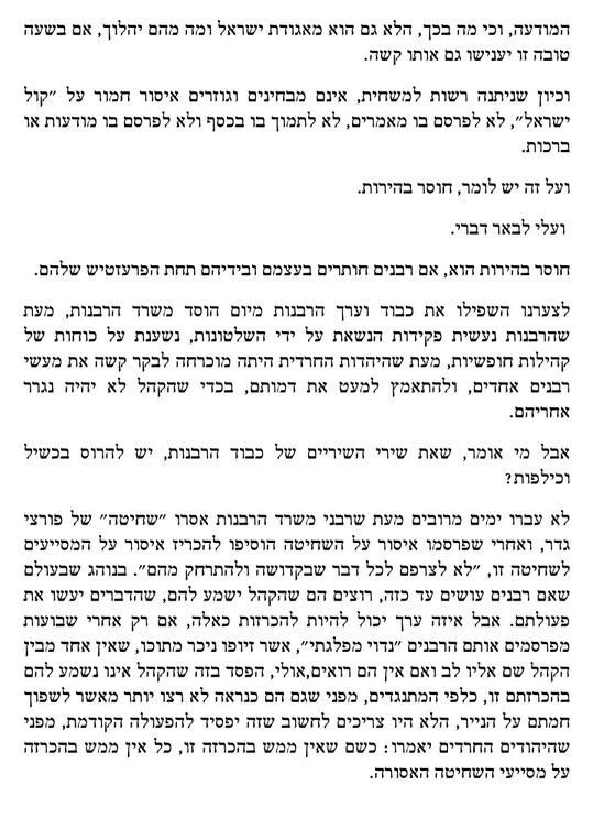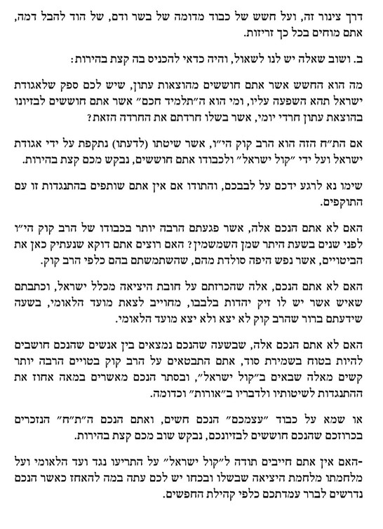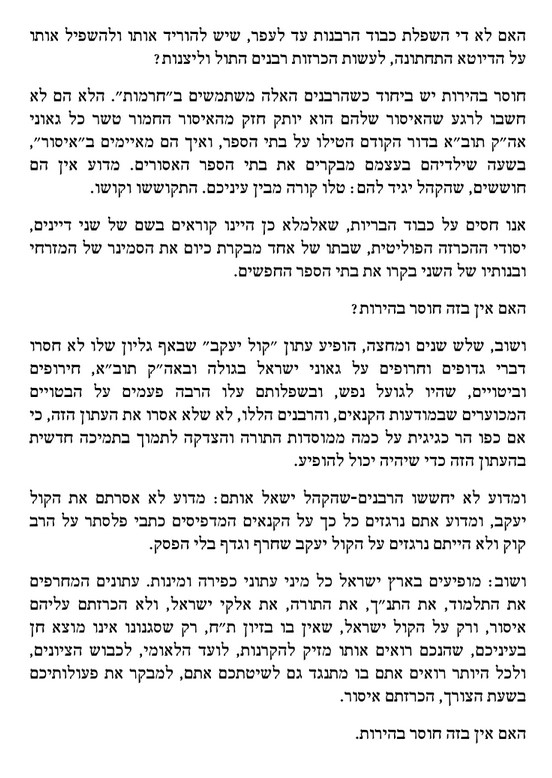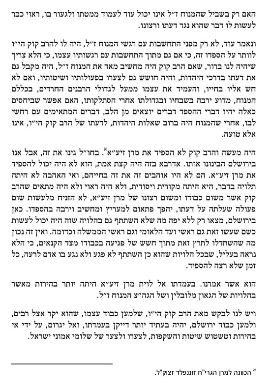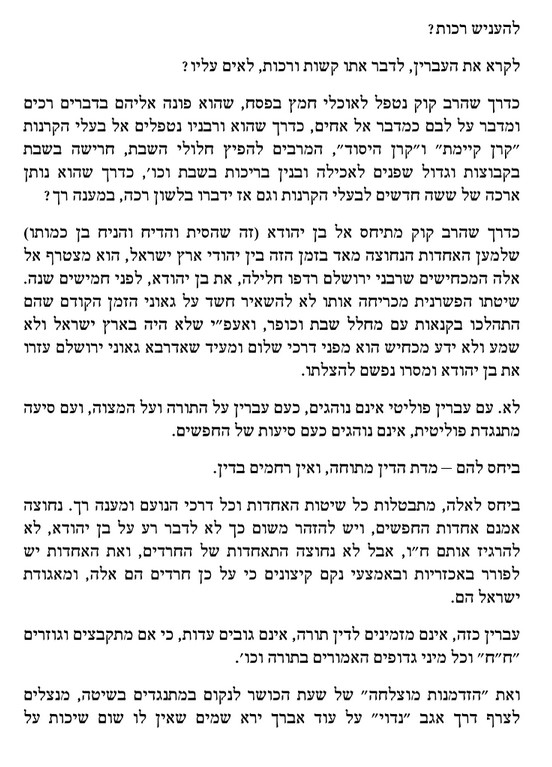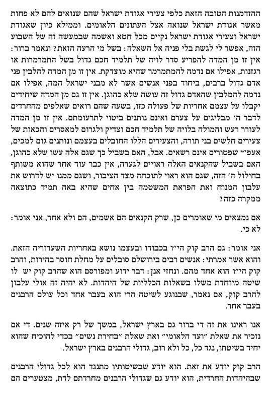 1. אולי תעלה גם את המכתב שהגר''ש אויערבך כתב לר דוב לנדו? כמה שזה אקטואלי