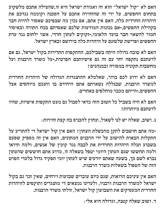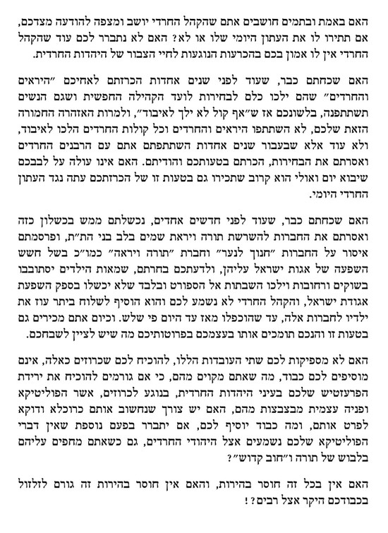 - האהבה והאחדות לחילונים והרדיפה מול החרדים