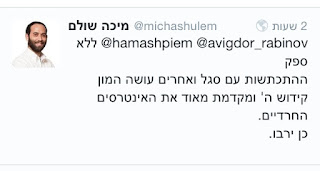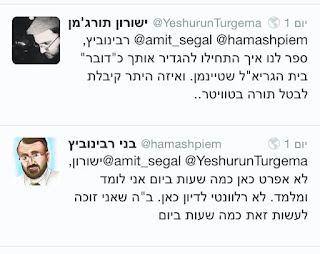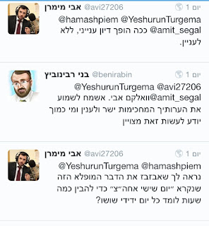 12. ישי כהן כתב כיכר השבת ממשיך את דבריו של אבי מימרן ומוסיף; יש מי שעסוק בערב שבת, ויש מי שמח]פש תעסוקה .. כשהוא מכוון את דבריו לעברו של בני רבינוביץ.