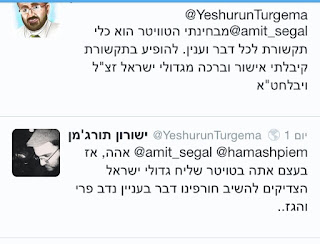 6. ישי כהן, כתב כיכר השבת, פונה בהומור שחור לבני רבינוביץ וקורא לו להביהר לעמית סגל שאינו עורך ביתד נאמן, למען כבודו של העיתון.