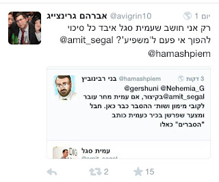 3. עמית סגל מחליט לכתוב בקול - אחת ולתמיד פרופיל קצרצר בן 140 תווים לדמותו של בני רבינוביץ, ומכנה אותו בין השאר באסטיונר ללא אתיקה.