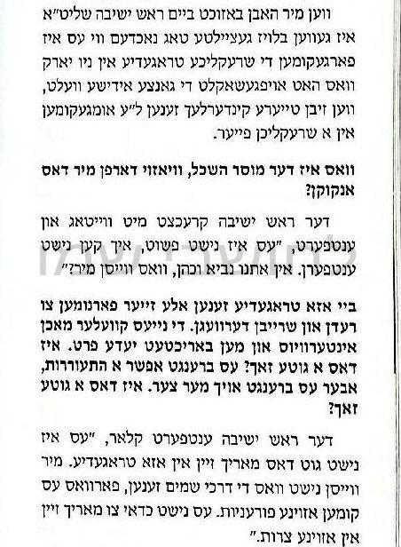 הראש ישיבה עונה ברור, "זה לא טוב להאריך בכזו טרגדיה. איננו יודעים מה הם דרכי שמים, למה באים כאלו פורעניות. לא כדאי להאריך בכאלו צרות".