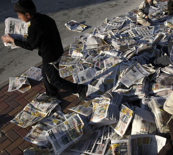 התנכלויות לעיתונים המהווים שופר להשמעת דברי גדו"י. למצולמים אין קשר.