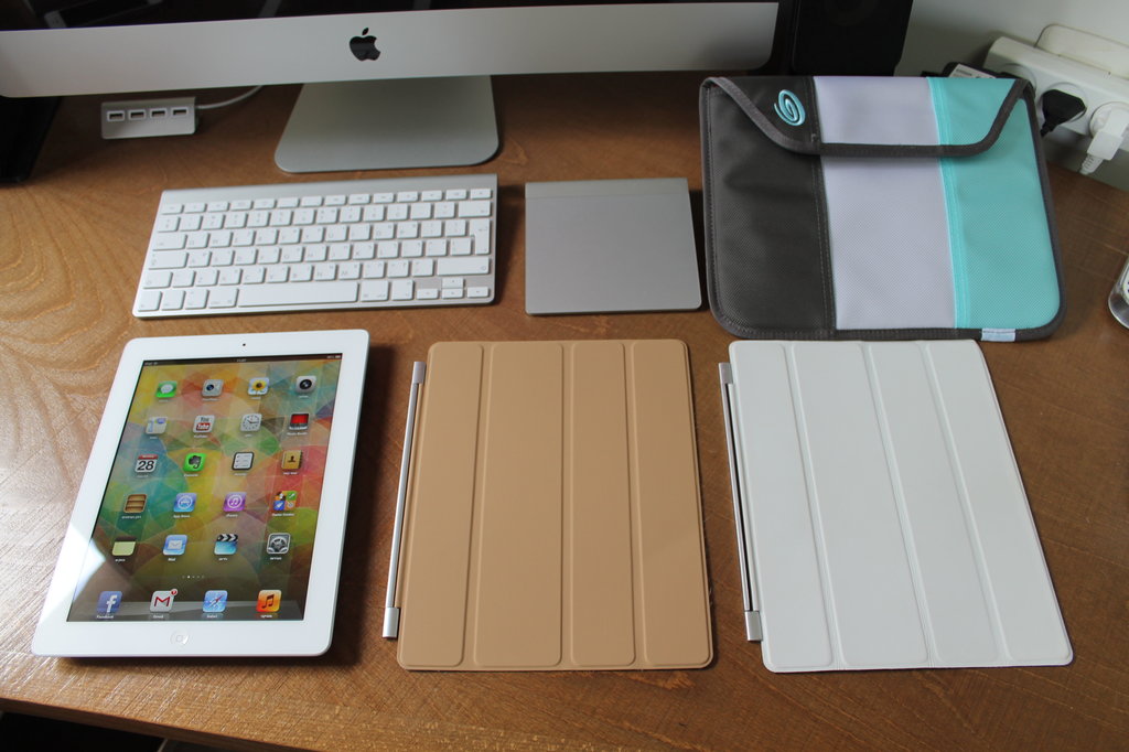 המכשיר מגיע עם שני כיסויי סמארט קאבר, אחד קרם ואחד לבן, תיק נשיאה, כיסויי Switcheasy Nude שקוף עם כיסויי קונקטורים, וכמובן האריזה המקורית עם המטען הכבל ושאר הירקות.