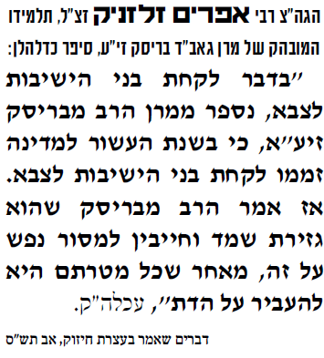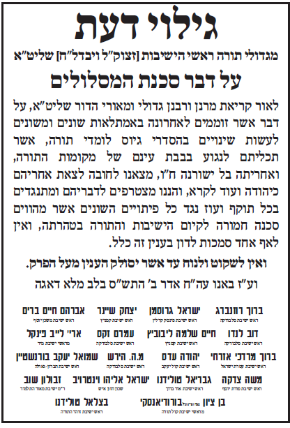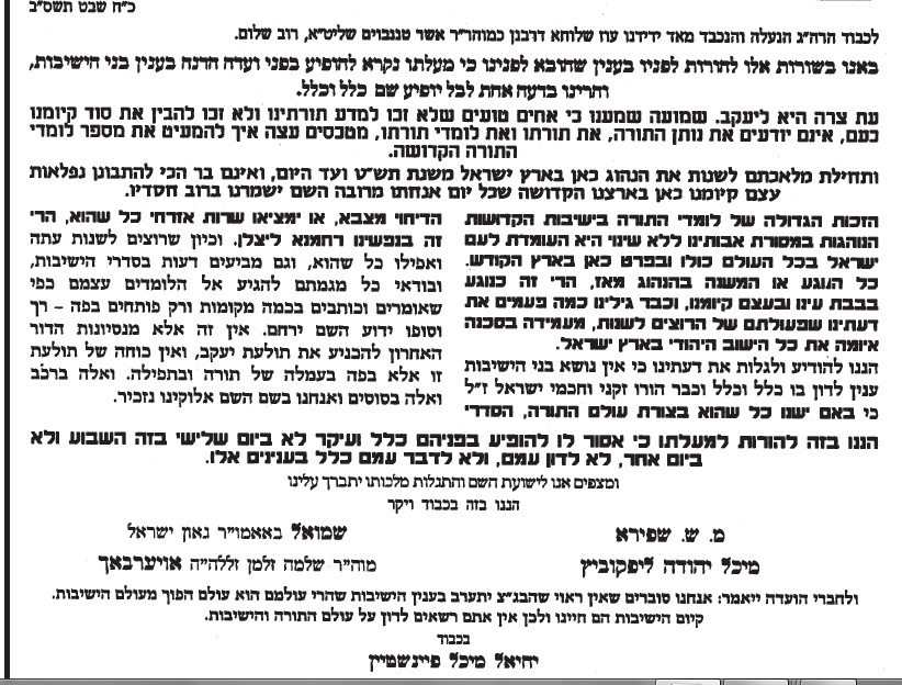 דעתם החדה והברורה של גדולי ישראל וראשי הישיבות בעניין חוק טל