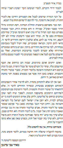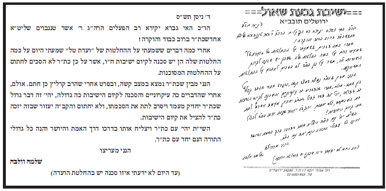 והנה מכתב הגר''ש וולבה שיצא מגדרו לחזק את ההנהגה האמיתית בישראל |