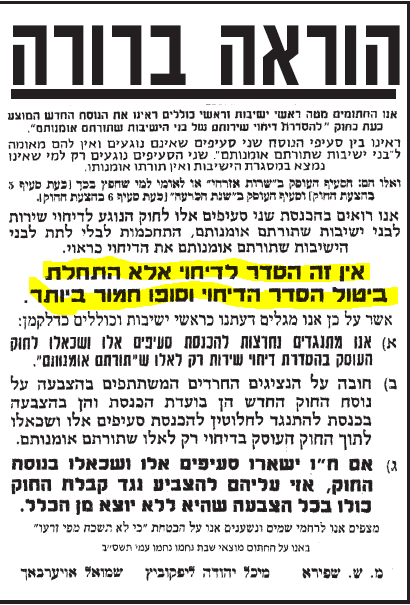 כולם מתעלמים גם מהעובדה שעקרונות חוק טל כבר אושרו ע''י הגרא''מ שך בשעתו |