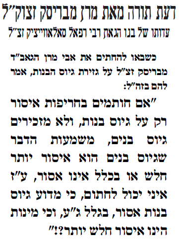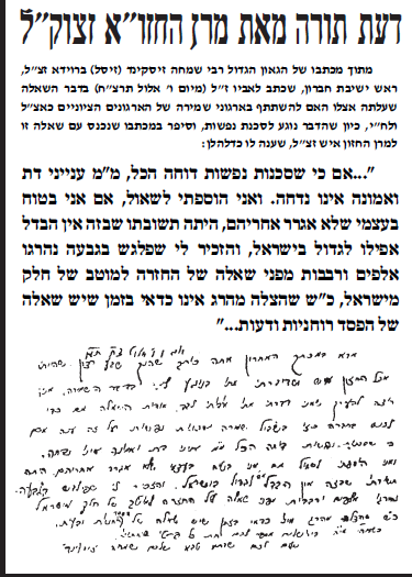 שימו לב לעדות במכתב על דעת הגר''ש ואזנר והגרמ''ד סולובייצ'יק |