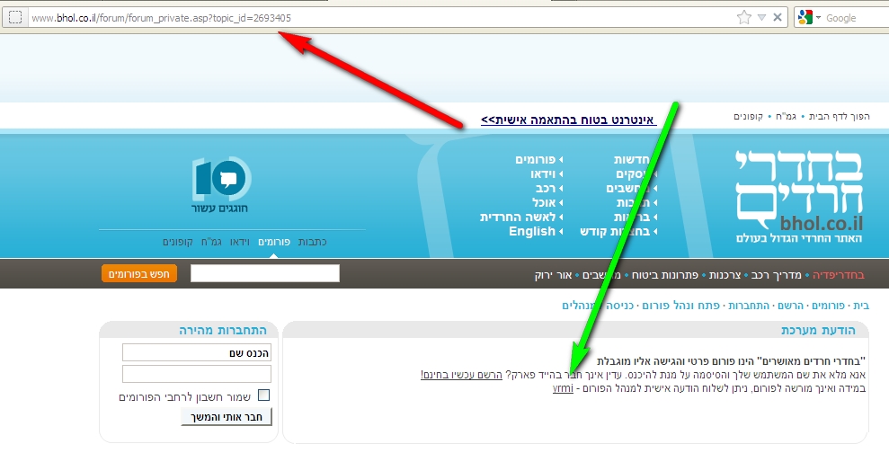 מה שכן, רציתי לציין כמה משפטים חסרי קשר לנושא, ואם יש בעיה ההנהלה יכול למחוק את התגובה שלי. כל ניק צריך לתת פרטים בסיסיים כשהוא נרשם לבח"ח יש ניקים בח"ח שהפרטים שלהם נחשפו איך שהוא, כולל שמות יש בח"ח פורום נעול בשם "בחדרי חרדים מאושרים" יש אפשרות תיאורטית לנהל פורום חסוי שבו יהיה אשכול עם שמו של כל ניק, ובו מידע על אותו ניק מתוך הצלבות הפרטים, כתובות אייפי וכן הצלבת תגובותיו. שוב, זה אפשרות תיאורטית בלבד. ויש אנשים שראו מה יש בפורום הסגור הזה, וכעת לא יכולים לספר כי הם לא מעוניינים בתביעת דיבה שנועדה רק כדי לחשוף אותם. כתבתי משהו לא בסדר? לכל דבר ועניין... |