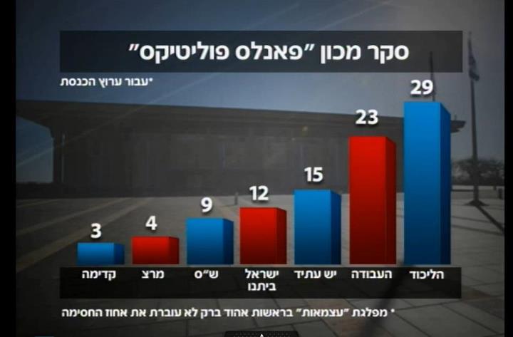 סקר שפורסם הערב (11.10) בערוץ הכנסת (בשיתוף 'פאנלס פוליטיקס') |