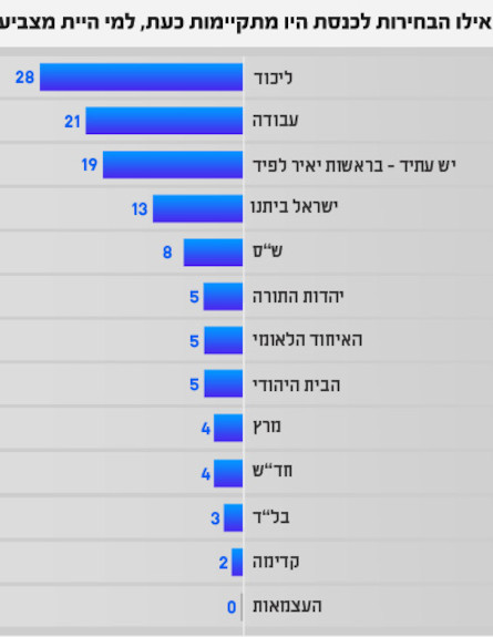 170. אם הבחירות היו מתקיימות היום; לפיד היה מקבל 28, הליכוד ביתינו - 25