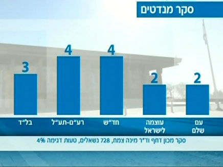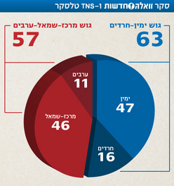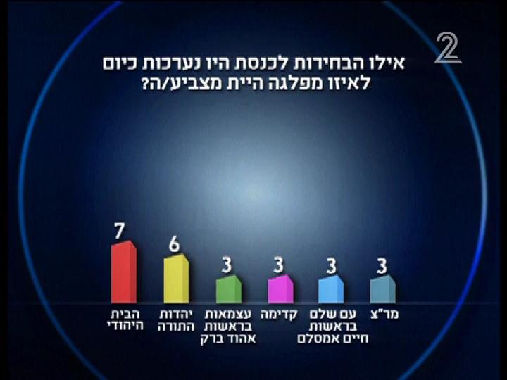 100. סקר רשת ב' :גוש הימין- 49, מנדטים גוש השמאל- 41, חרדים- 19