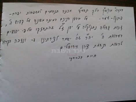 תשובה אותנטית בכתב ידו של מרן הגר"ח קניבסקי שליט"א נדפסה בקונטרס הלכתי שנדפס בחודשים האחרונים ואשר עוסק בשאלה הלכתית שנויה במחלוקת. מדובר בקונטרס 'פרי אליעזר' שמנסה להוכיח כי המנהג של קשר תפילין מרובע בתפילין של ראש, הוא המנהג הנכון שיסודו בדברי הפוסקים (ולא הקשר בצורת דלי"ת).הקונטרס נכתב ע"י הרב אליעזר פולק שליט"א, ראש כולל נדבורנה בירושלים, שביקש לברר גם מה דעת גדולי תורה ליטאיים בהלכה זו. כאשר פנה בשנה האחרונה אל מרן הגר"ח קניבסקי שליט"א זכה לקבל תשובה בכתב ידו ממש. (כידוע, בשנה האחרונה ממעט הגר"ח להשיב בכתב יד, ומבקש להעביר תשובותיו רק בע"פ). הרי התשובה הנדירה בכתב ידו של הגר"ח, כפי שמופיעה בקונטרס.