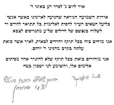 יש, והיו מקרים פרטניים שבו רבנים התירו לבודד ללכת לצבא ע"מ לצאת לעבודה! ועל זה מדובר! לא מדובר על אותם חיילים ששולחים אותם ע"מ לצוד נפשות לצבא! "זה כבר תקופה שיוצא לאור עיתון בשם "הפלס", והוא מלא בביזוי חכמים ובמחלוקת, ומפיץ שנאה בין יראי ה', ומקררים את ציבור יראי ה' מלהתחזק בתוי"ש, ומסיתים נערים לעשות מעשים שאין דרך התורה נוחה מהם, ואף מביא לידי חילול ש"ש רח"ל, ועוד הרבה דברים רעים יש בזה. "על כן אנו פונים לכל אשר יראת ה' בלבבו, שלא יכניס בשום צורה עיתון זה לביתו, ושלא יסייעו בידם בשום צורה שהיא, וקל וחומר שאסור להתראיין אצלם, ולא לפרסם אצלם דברים בשום אופן, וראוי ליידע המפרסמים שהם עלולים ליתן יד לחילול ש"ש, בתמיכתם בדבר הפסול הזה. "וה' יתברך יערה רוח טהרה ממרום וישכין שלו' בין יראי ה' בפרט בעת הזאת, בעומדינו מול מהרסים מבית ומחחוץ ר"ל". |