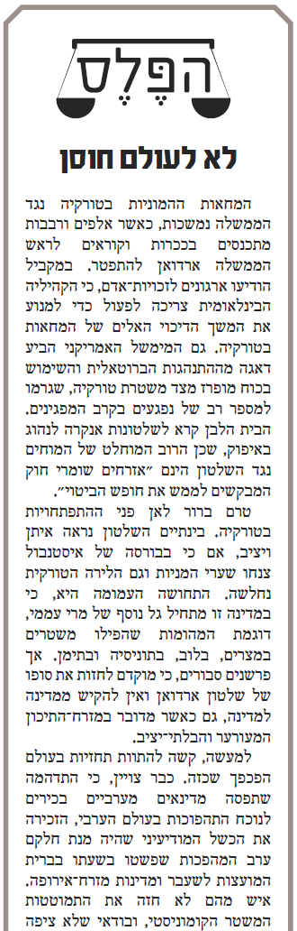 המחאות ההמוניות בטורקיה - ולקחן... לא לעולם חוסן !