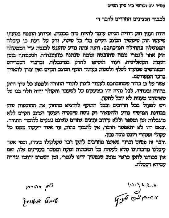 137. הרב טננבוים פרש רק בסוף. לפני חתימה.