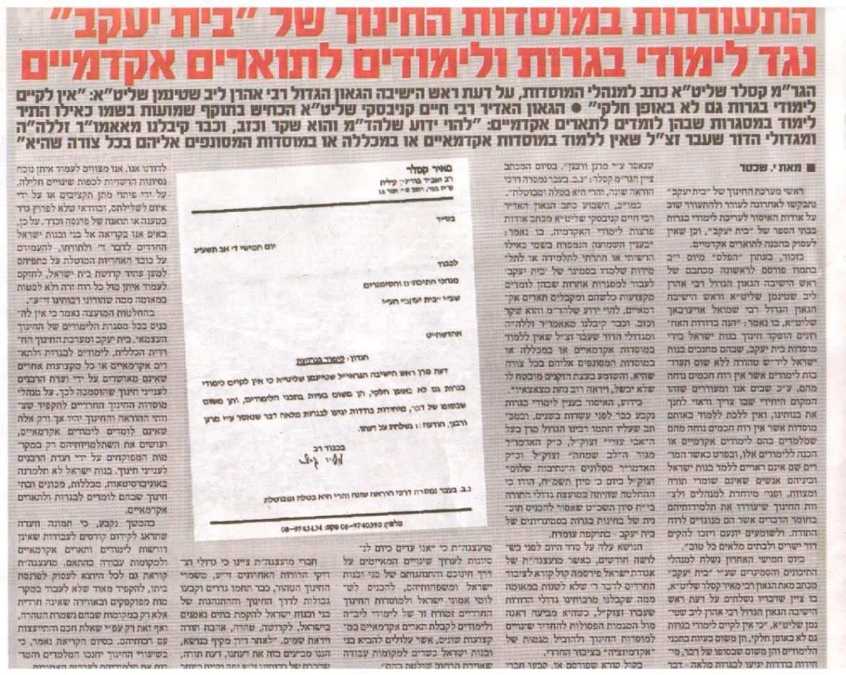 הרב קסלר חוזר בו מהוראה שהוא נתן בשמו של הרב שטיינמן , להתיר לימודי בגרות מסוימים בסמינרים ובתיכונים. האם גם ביתד זה פורסם? ציטוט מאת: לא אמר כלום