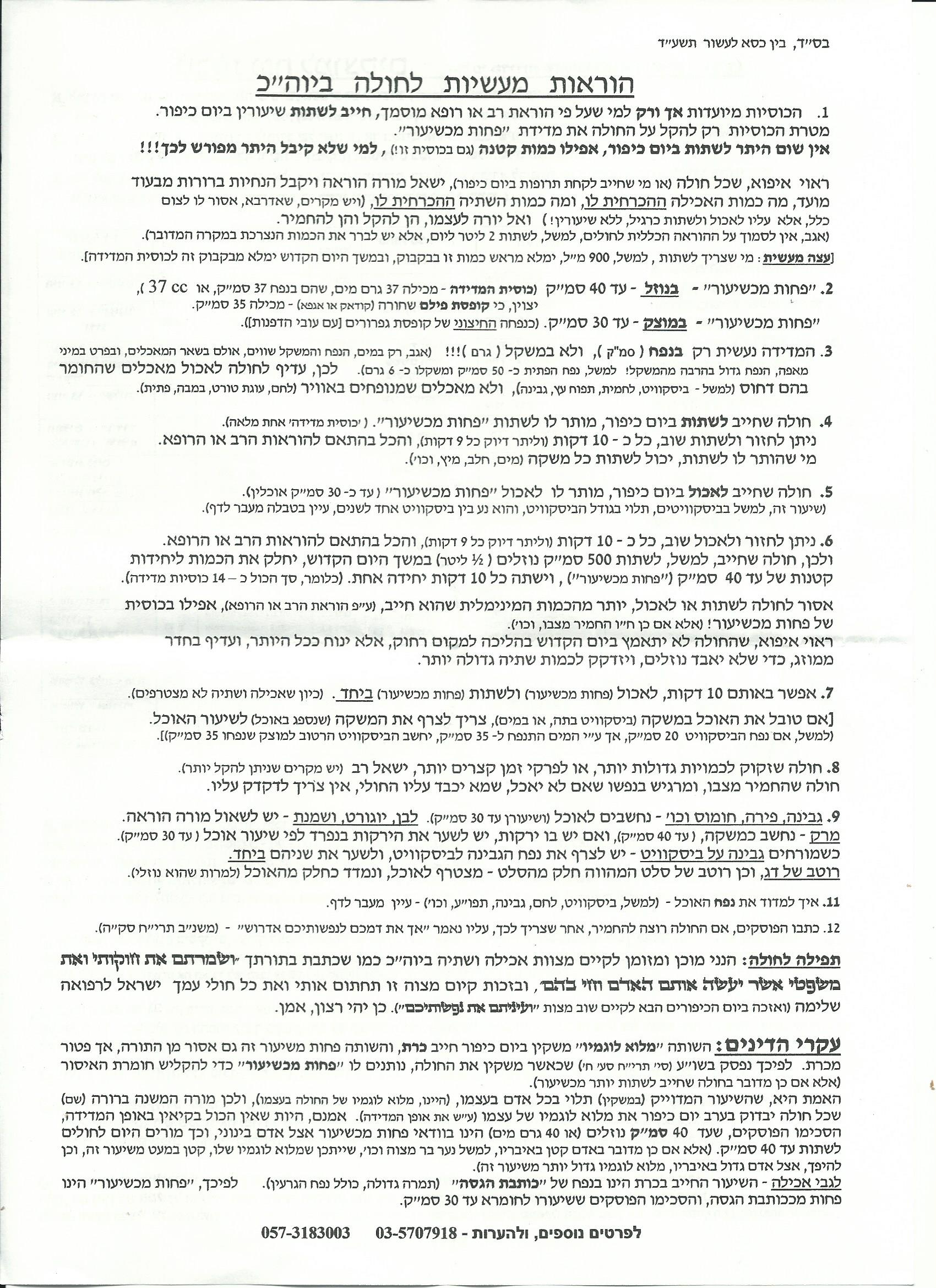 עבור החולים - דף שיעורי אכילה מבי''ד של הרב וואזנר שליט''א