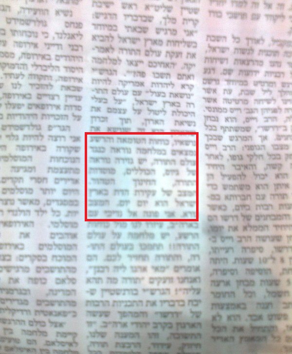 ערכתי לאחרונה בתאריך 12.11.13 בשעה בברכה, קורא מפה הבוקר ביתד והמבשר (אולי גם המודיע,) ישנה כתבה על הכינוס של "דרשו" בשבת האחרונה בארה"ב, בתוך הדברים ישנו ציטוט מדברי הגאון רבי שמואל יעקב בורנשטיין שליט"א שנשא דברים על הגזירות בארה"ק: לפניכם הציטוט המדויק מתוך נאומו של הגרש"י בורנשטיין שהופיע בכתבה ב"המבשר":"כל אחד לפי ענינו: האברכים בחיזוק לימוד התורה ובעלי היכולת בנשיאת הארון, תוך זכרון שהארון הוא זה שנושא את נושאיו. כוחות הטומאה והרשע נמצאים במלחמה נוראה כנגד עולם התורה, יש גזירה נוראה של גיוס, הכוללים, מוסדות התורה, החינוך הטהור. המצב של עקירת הדת בארץ ישראל הוא יום יום. המצב נורא." הציטוט המדויק הנ"ל הופיע ג"כ בכתבה בעיתון "הפלס". והנה הציטוט מהכתבה "יתד נאמן" שבו הושמט קטע עיקרי מתוך דברי הגרש"י: "כל אחד לפי ענינו: האברכים בחיזוק לימוד התורה ובעלי היכולת בנשיאת הארון, תוך זכרון שהארון הוא זה שנושא את נושאיו. המצב של עקירת הדת בארץ ישראל הוא יום יום. המצב נורא." שימו לב: כל הקטע המודגש שהופיע בהמבשר ובהפלס, ושנוגע לגזירות על הגיוס והחינוך ועל כוחות הטומאה שנלחמים בעולם התורה, צונזרו בכתבה מיתד נאמן!!!. דומה שאין צורך להוסיף...הציטוט המדויק של הגרש"י בורנשטיין ב"המבשר":