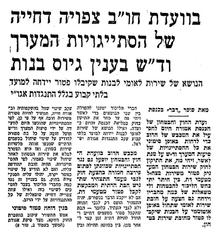 10. הדרך אל פטור הבנות מגיוס,