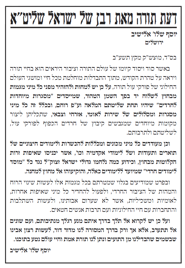 בכתבה לציבור החרדי להשתלב בלימודי רפואה ואקדמיה, שנאסרו ע"י גדולי