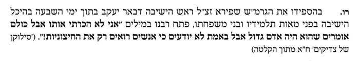 וזה שמחפשים אותו לא אומר שלא מוצאים דברים חריגים ביותר. מבחינתי הרגע המכריע היה דברי הנפש החיים. לא היה גדול ליטאי שיחלוק על דבר יסודי כזה, ובמקום להצניע את האמירה הזו , הרב מישקובסקי עוד יוצא בקולות וברקים להצדיק אותה.