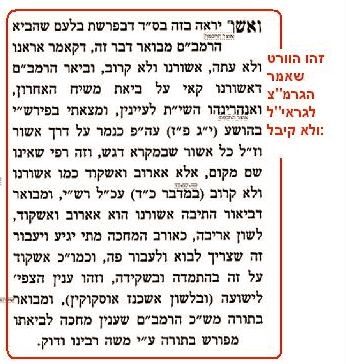 ערכתי לאחרונה בתאריך 30.05.14 בשעה בברכה, ניקכפול ולכן כשהוא ציטט לו את הרמב"ם הוא תיכף מחה בו על הביאור שהוא מתכונן לומר...ה"אז נדברו" היה אומר כך וסוגר את הסיפור. אתה פשוט כוייפר ברוה"ק של הרב שטיינמן. |