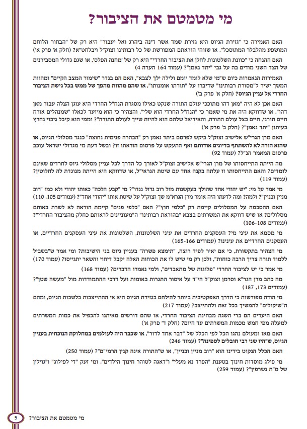 אני מעריך מי המקצוען שכתב את זה, ומכיון שכך, היכונו למכתבי חרמות ונידויים. הספר יורד לפרטי פרטים ונוקב עד שערי מוות, בהחלט מזריח אור על אחת מהפרשות האפלות ביותר בחמש השנים האחרונות, ובעיקר מסיר סוף סוף את המסוה מעל פניו התמימים של העומד בראש האסון הגדול של היהדות בארץ ישראל.מה המכנה המשותף של הרשימה הבאה: חזוניש 5, שאולזון, חב"ד, חייניקים, שונאים, חרדשי"ם? לבקשת הנהלה הורדתי את הפסוק מ"מזמור שיר ליום השבת"... |