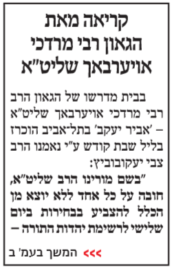 רק בשינוי אחד קטן- האספה למען המרכז היתה בהשתתפות הגר"ש.