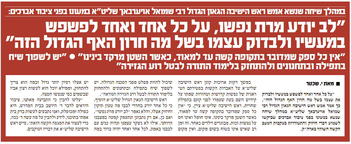 13. הגר''ש אוירבאך על הטבח: ''צריך להפסיק את המחלוקת''