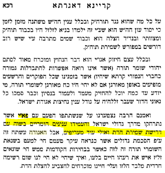 ערכתי לאחרונה בתאריך 27.11.14 בשעה 15:43 בברכה, כל הפוסל "הפשרנים שמוכרים את עקרונות היהדות בעד רווחים חומריים, פוליטיים, והשפלת הזולת, תוך כדי זניחת מורשתם של גדולי הדורות, ושל עיקרי הדת.."ברקת...שטרן...בנודע לטענותיך שהפסול הוא לא ש"לא צייתו לגדולי ישראל" אני אנסה להשיג את מכתב החזון איש לר"ק כהנא. ואין הדברים סותרים, אלא מי שמכריע מתי זה נחשב "מכירת האידישקייט", ומתי זה נחשב למען האידישקייט אלו גדולי התורה. |