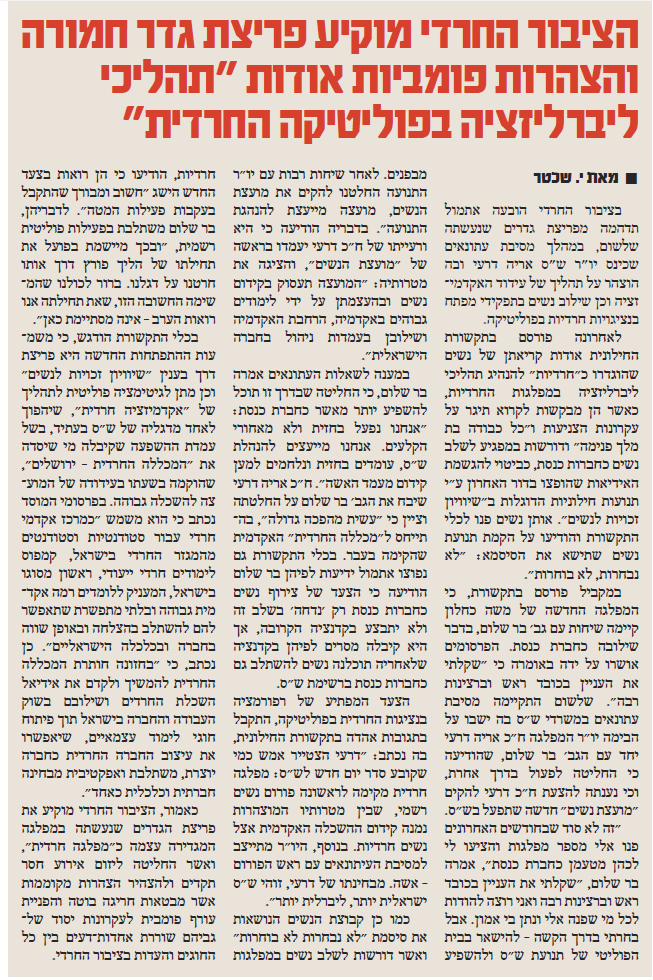 2. 'מעריב': שינוי פני החברה החרדית - המזימה שמאחורי החיבור של דרעי עם הגב' בר-שלום