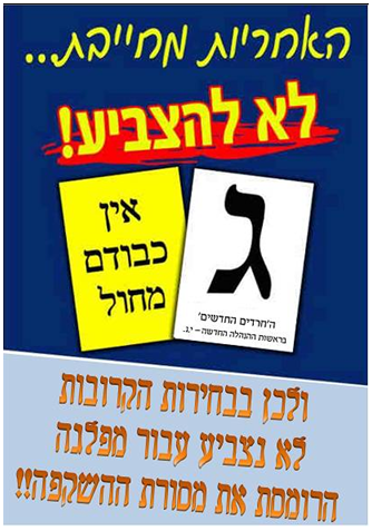 לא למפלגה הבוגדנית ! לא לשונאי התורה ! לא למשתפי הפעולה ! לא לכת הרודפים והפשרנים ! לא ל-ג'