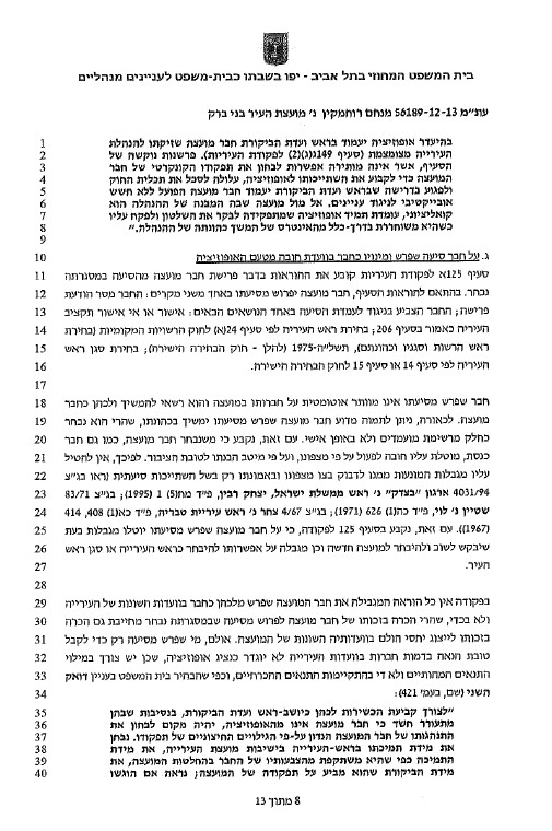 ועל כן, מגיעה לו הנציגות השייכת לאופוזיציה בוועדת ההנחות בארנונה בעיריית בני ברק.