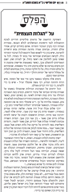 מאמר מערכת ב'הפלס' - ההסטוריה חוזרת: הגלות העצמית של העיתונות החרדית