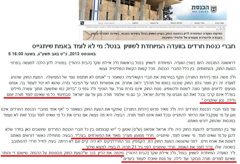 "מי שטוען שכל חוק הגיוס תלוי בבית המשפט פשוט טועה כל מה שלא האריכו את חוק טל בחמש שנים זה בגלל החלטתו של ליברמן שהחליט לא לתמוך בהארכת החוק, ליברמן הזה היה הלוחם הראשי בתלמידי ישיבות וקיבל את עונשו מהקב"ה במזומן". סיים גפני.