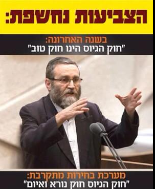 גפני המשיך: "העמדות של הבית היהודי הם אותם עמדות כמו של לפיד – מנהיגי דרכנו צריכים לבחור בין רשע יותר לרשע פחות לא שאנחנו צריכים לבחור את הטוב יותר. הם מסתכלים עכשיו רק על יהדות התורה האם אחרי הפגיעה בגיוס בכוללים ובישיבות הציבור החרדי אומר לא באופן מוחלט לגזירות ולגיוס ויש רק דרך אחת – בקלפי. אין דרך שאומרים אני מפגין ומעבר לזה אני לא עושה כלום! בכל דור ודור יש את השפה המדוברת והדרך היא בהגדלת הכוח החרדי.