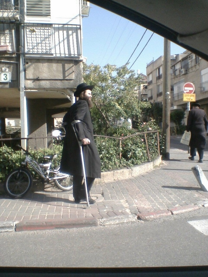 כאשר ברקע נראה בריון העיר אליהו ארנד שמנהל ויכוחון קצר עם הרב