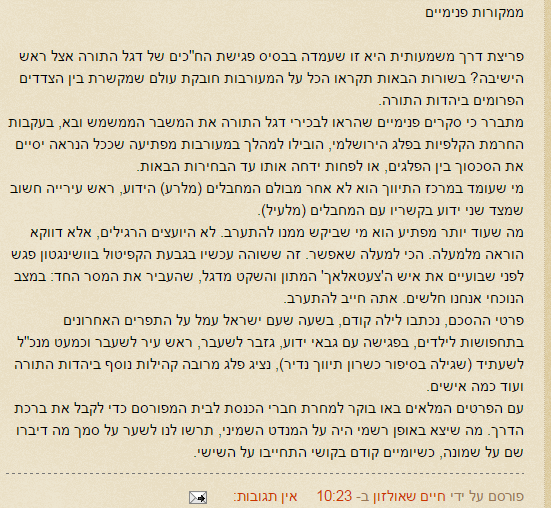 הוותיקים לפח, וכאילו היה איזשהו נסיון להידברות עם בני התורה..