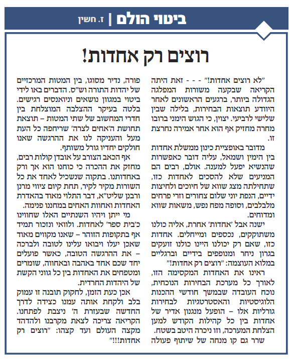 ''המבשר'' הבוקר: ''רוצים רק אחדות''