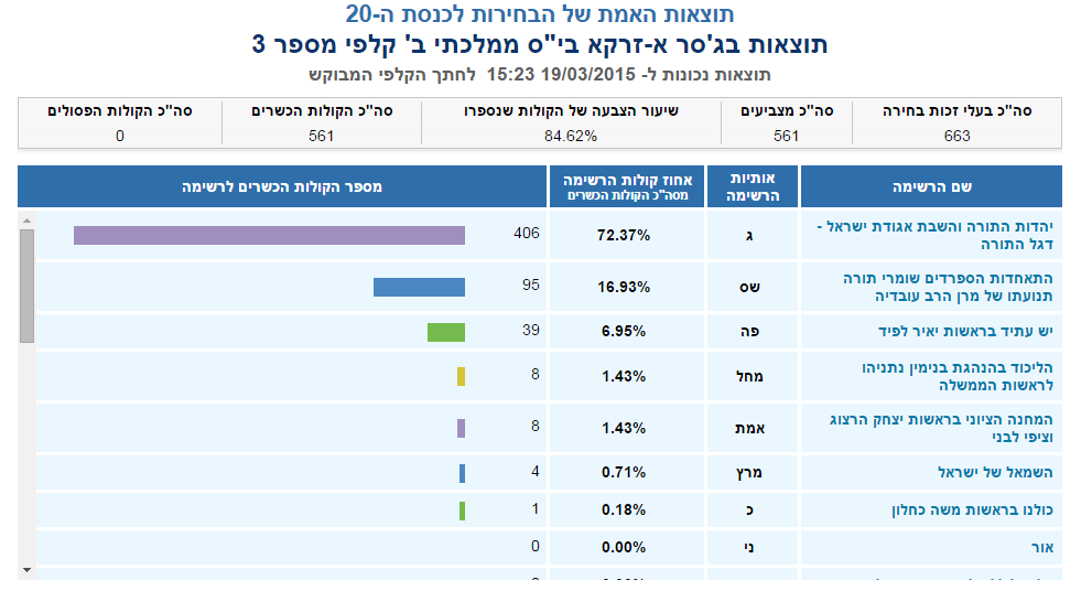 בג'סר א-זרקא: (בי"ס ממלכתי קלפי 3) יהדו"ת 72.37% מהקולות.