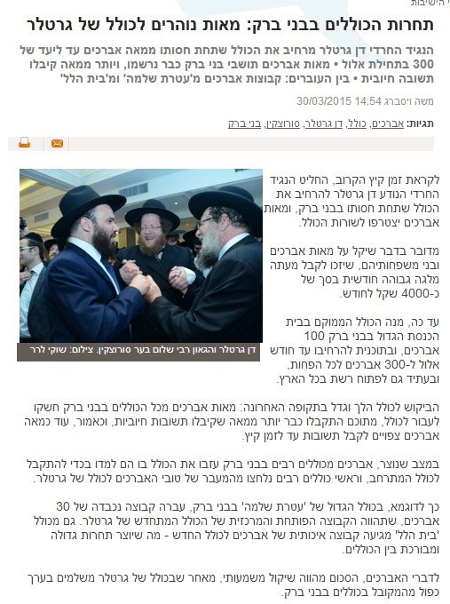 לקראת זמן קיץ הקרוב, החליט הנגיד החרדי הנודע דן גרטלר להרחיב את הכולל שתחת חסותו בבני ברק, ומאות אברכים יצטרפו לשורות הכולל.