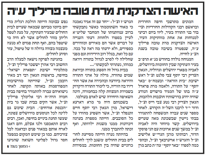 מרת טובה פרייליך ע''ה