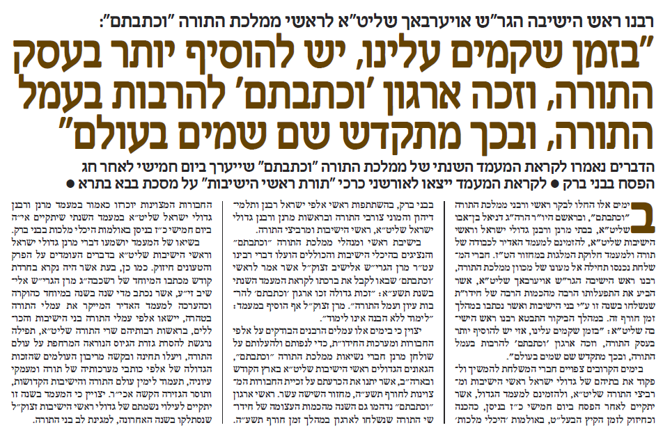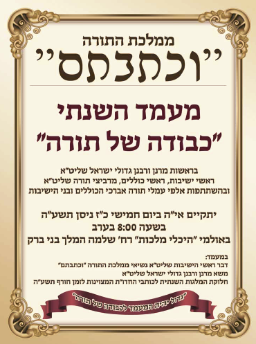 מרן ראש הישיבה שליט''א בדברי חיזוק לקראת המעמד האדיר של ''וכתבתם'' לאחר פסח